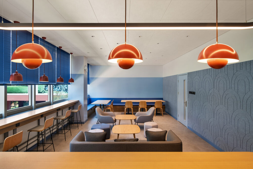 This small but impactful renovation transformed an overlooked leftover space into a welcoming hub for teachers between classes.